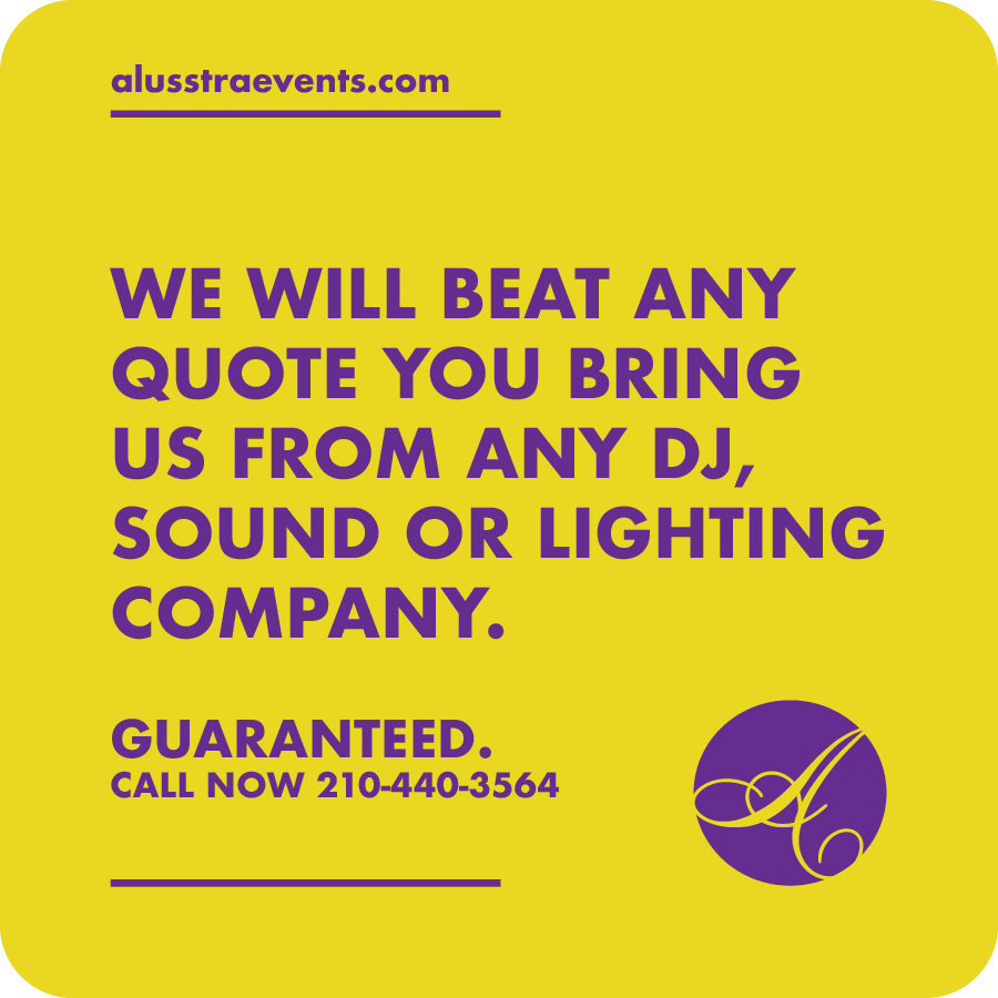 We have planned and executed thousands of weddings in the San Antonio area. If you need a professional DJ in San Antonio or a wedding DJ, look no further. Alusstra does it all. Corporate events and sound system rentals too!